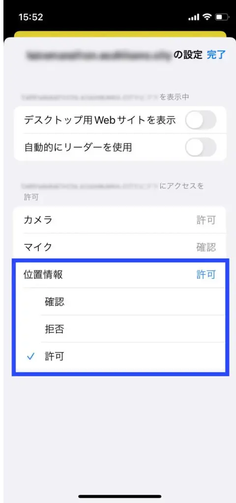 ウェブサイトの位置情報設定