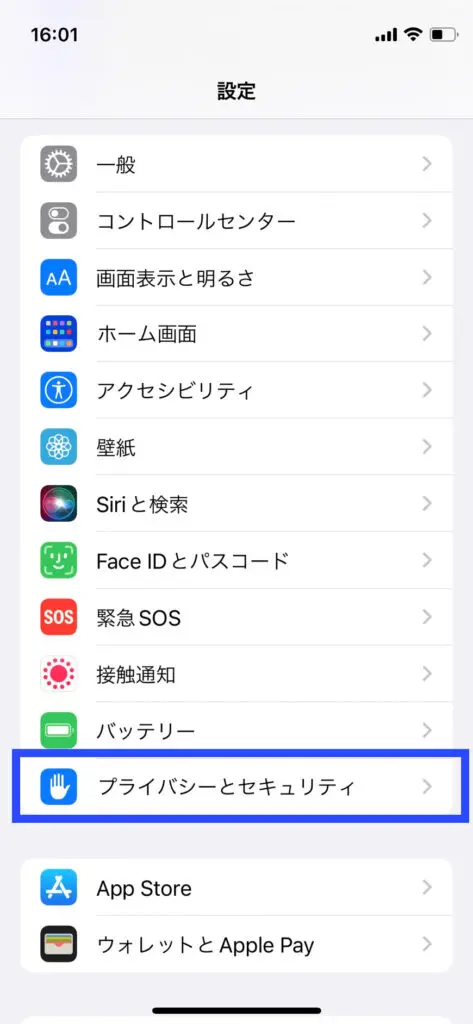 ※バージョンによって「プライバシー」だけの場合もあります
