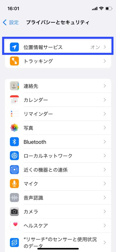 3.「位置情報サービス」を選択します。