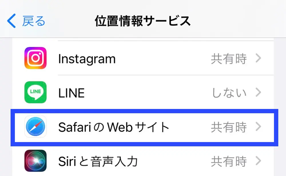 Safariブラウザの位置情報設定